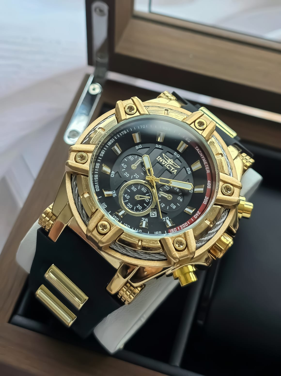 RELOJ PARA HOMBRE INVICTA - NEGRO CON DETALLES DORADO Y PLATEADO